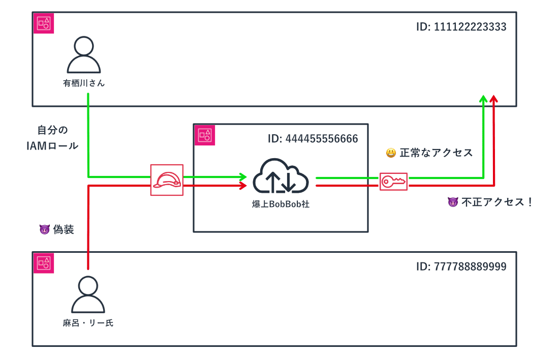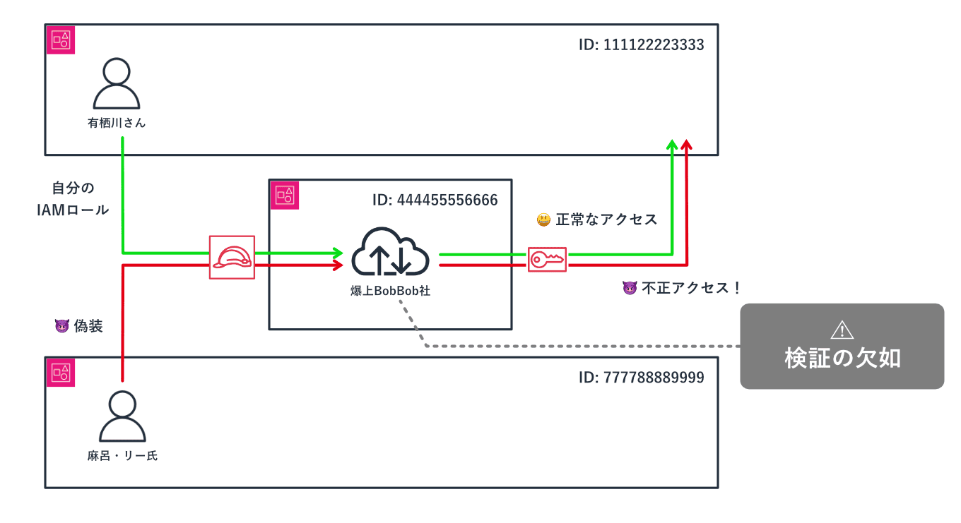 そして、AWS が提供する External ID をユーザごとに一意で推測困難な値として付与することで、ユーザとロールの関係性を検証し、権限の不正利用を阻止できることを示しました。