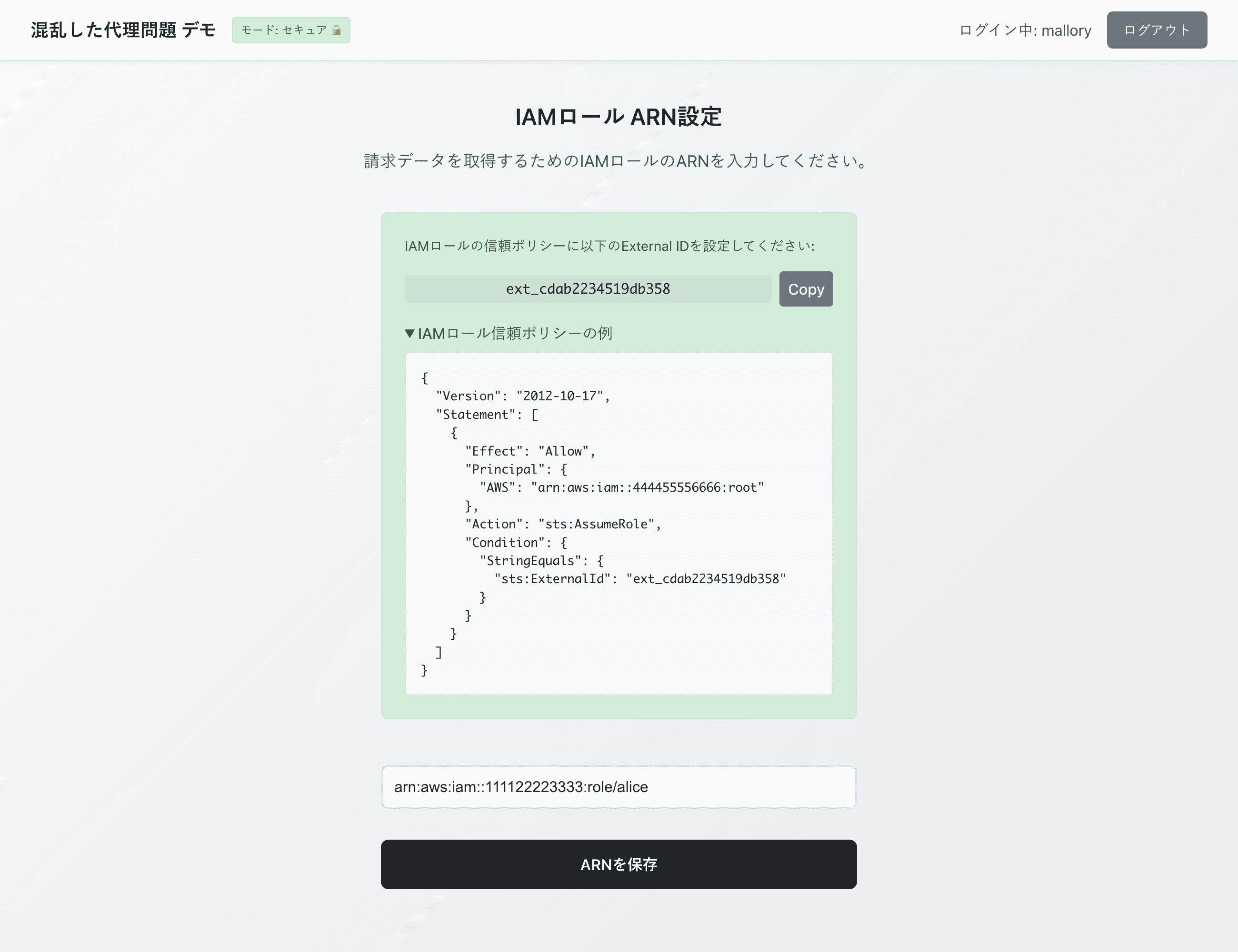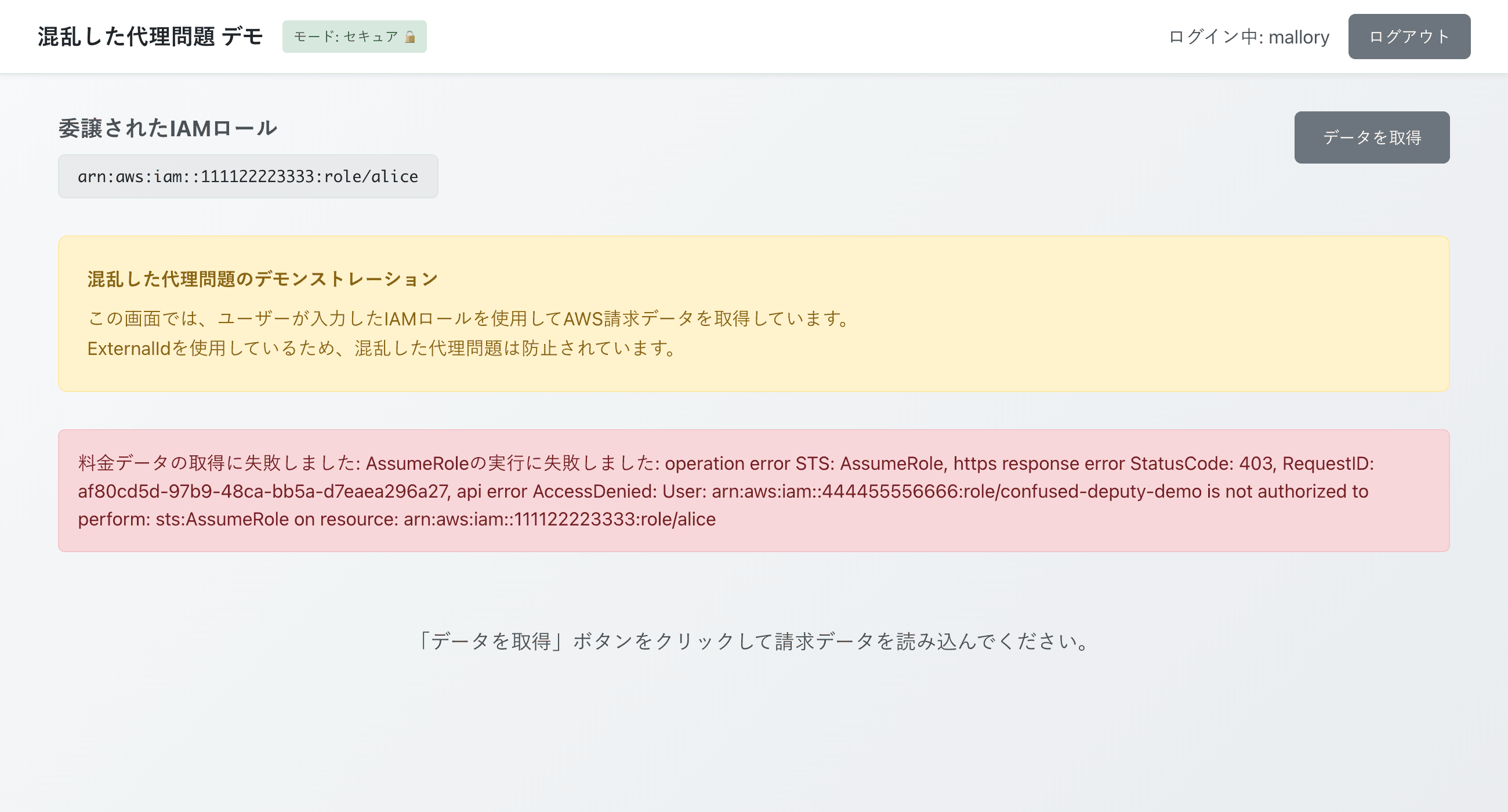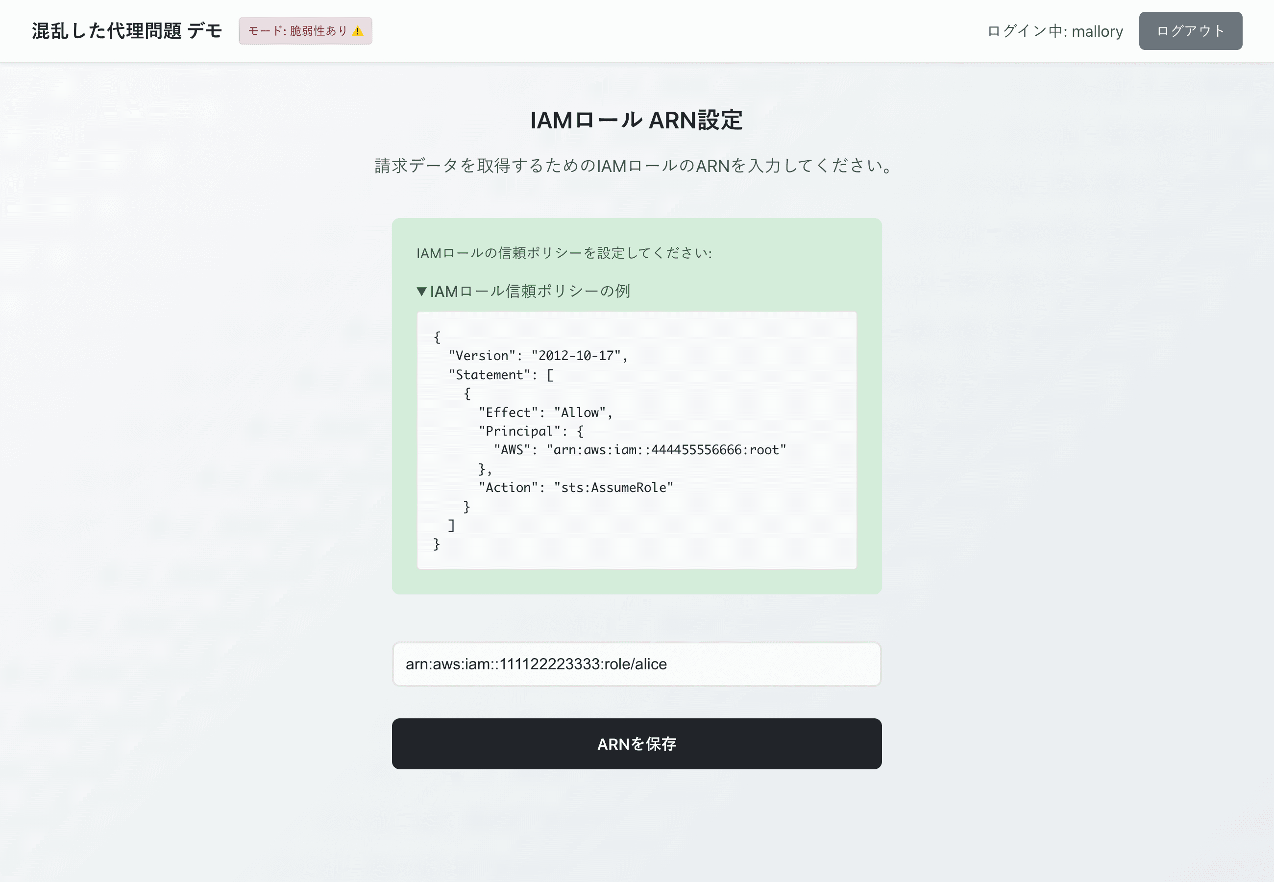 攻撃が成立してしまった原因は、デモアプリケーションの「ユーザから渡された IAMロールを検証なしに受け入れ、そのまま行使している」という実装にあります。