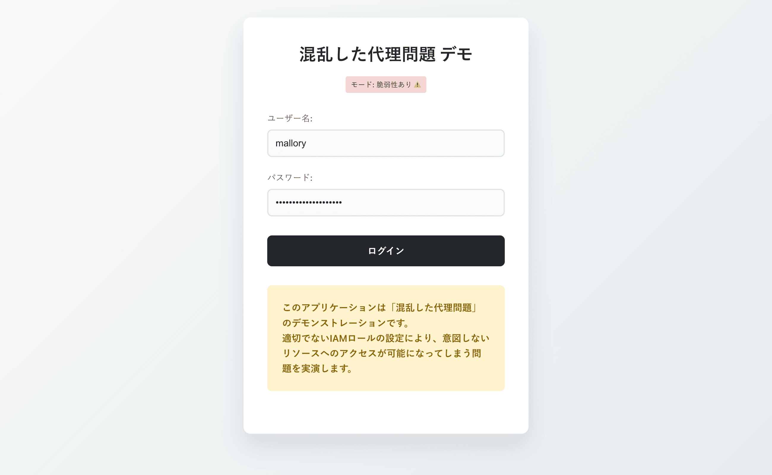 そこで、あえて脆弱性を抱えたデモアプリケーションを作成し、混乱した代理問題を実演することで理解を深めてみることにしました。
