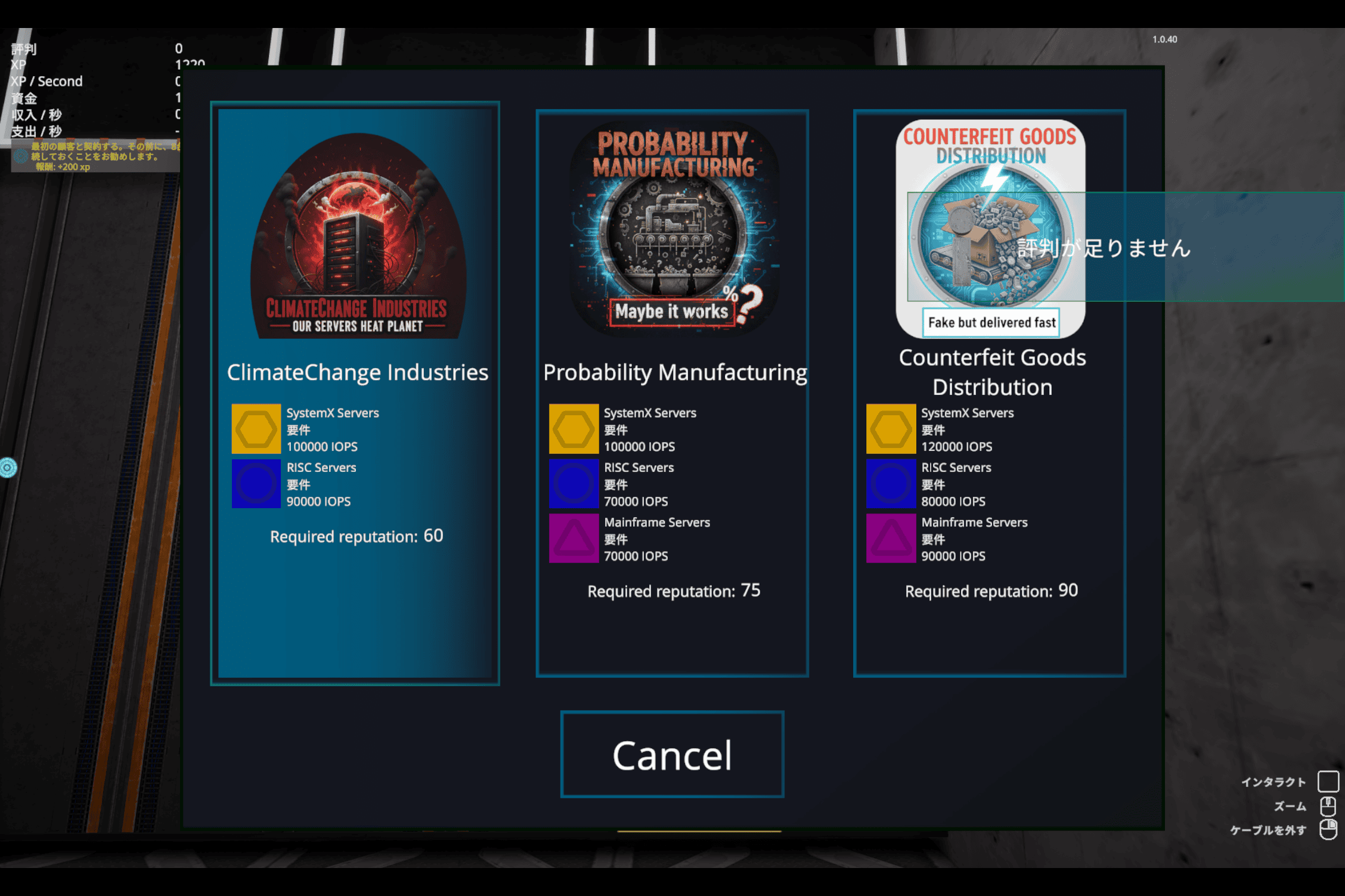 時間経過で少しずつ評判 / XP / 資金が貯まっていくようになります。