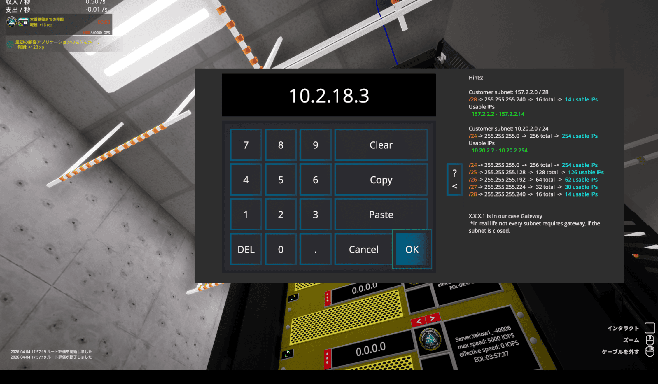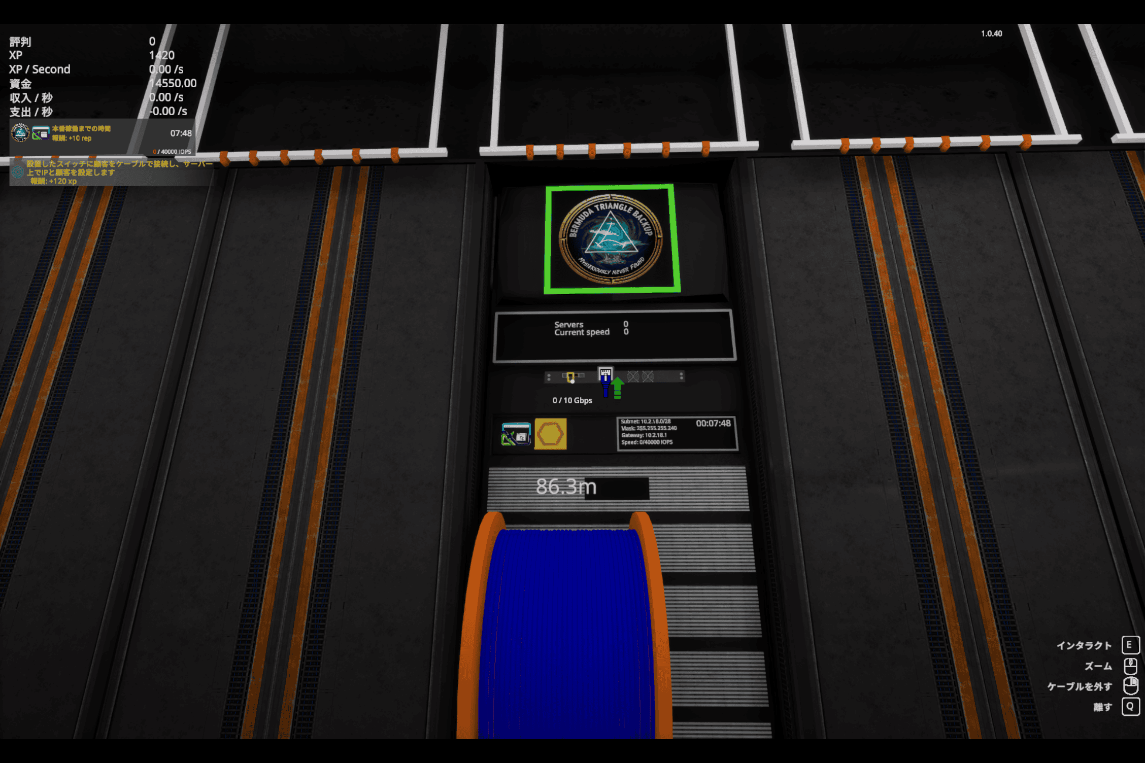 顧客と契約すると 10分間のカウントダウンが始まるので、タイムリミットまでに用意したサーバー群と接続します。