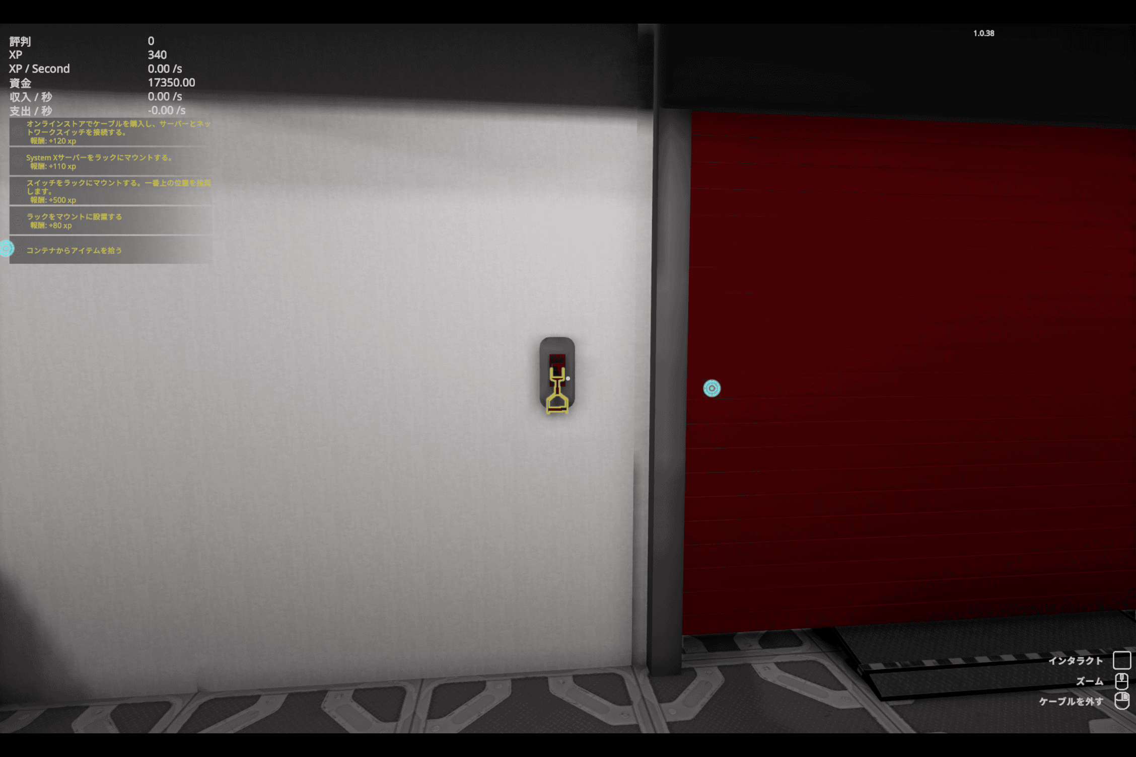 「コンテナからアイテムを拾う」とのことなので、壁のハンドルを上げてコンテナ型倉庫のシャッターを開けます。